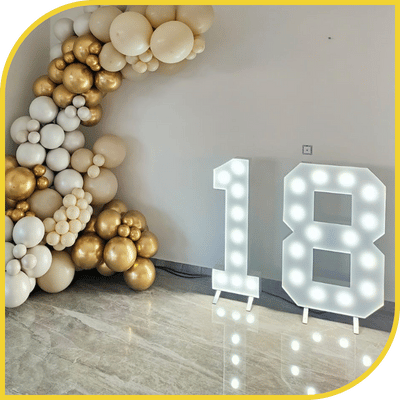 Marquez votre événement avec notre forfait 2 chiffres géants lumineux fabriqués dans nos ateliers à Nice. Solution parfaite pour afficher l’âge d’anniversaire, l’année de mariage, la date anniversaire ou tout autre nombre significatif avec style et grandeur dans les Alpes-Maritimes et le Var.