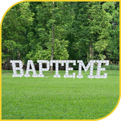 - Atmosphère Tendre : Les lettres B-A-P-T-Ê-M-E connectées créent une ambiance magique parfaite pour ce moment sacré